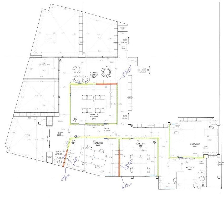 Sur une surface de 17 m², ce bureau peut accueillir jusqu'à 4 postes de travail.